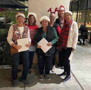 Several members answered the call to sing Christmas Carols at the Mission Marketplace shopping center on a balmy December evening. WCV was invited to sing for an hour and receive $250 for our club. It was a little awkward at first, but after a few songs we sounded great! Many shoppers waived, smiled and stopped to listen to the familiar holiday music. We had so much fun we would do it again for free!